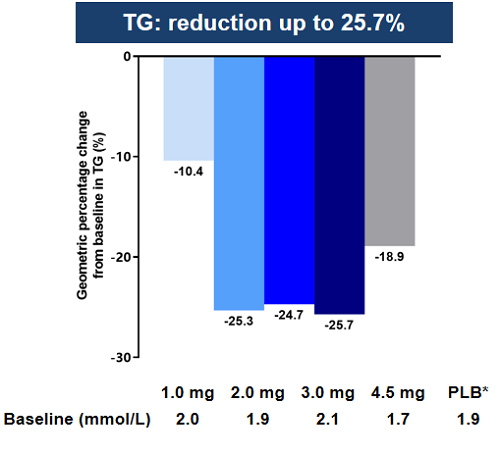 此外,HRS9531各剂量组中最高降低甘油三酯(TG)25.7%、收缩压/舒张压9.5/4.9 mmHg(图6)。这些结果表明,HRS9531对T2DM患者的肝脏、肾脏和心血管等具有一定保护作用,可能对代谢功能障碍相关脂肪性肝病、慢性肾脏病和心血管疾病等人群具有潜在的治疗价值。